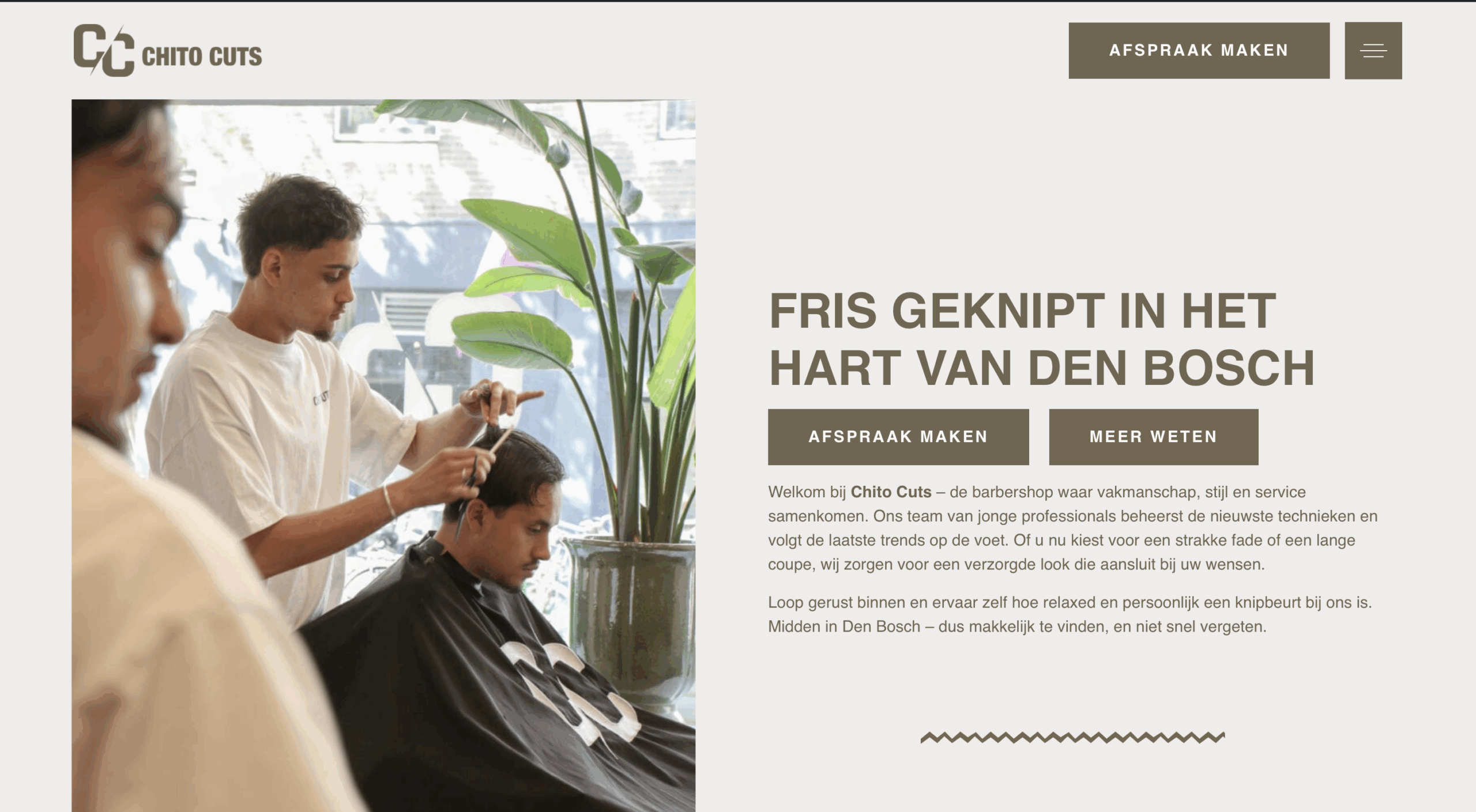 Voor mijn barbershop ChitoCuts was ik op zoek naar een website die écht past bij de uitstraling van mijn bedrijf: professioneel, strak en met gevoel voor stijl. Geen standaard template, maar een online visitekaartje dat de kwaliteit en sfeer van ChitoCuts weerspiegelt.BIC Webdesign begreep vanaf het eerste moment waar ik voor sta. Ze hebben mijn bestaande huisstijl gerespecteerd en versterkt, en dit vertaald naar een website die zowel visueel sterk als gebruiksvriendelijk is.Wat ik als ondernemer erg waardeer: