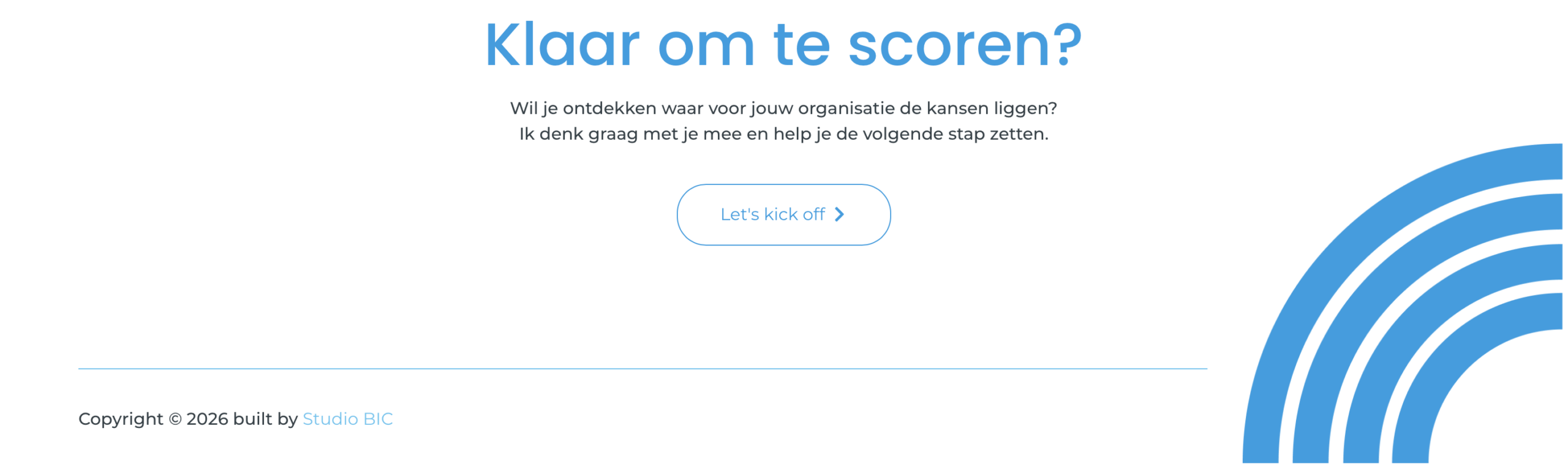 Favier Go To Goal is een advies- en ondersteuningbureau dat organisaties helpt om hun commerciële doelen te behalen. Met een energieke, doelgerichte en creatieve aanpak ondersteunt oprichter Niek Favier bedrijven op het gebied van (sport)marketing, partnerships, new business, campagnes, events, project- en accountmanagement. De missie van Favier Go To Goal is om beweging in organisaties te brengen, nieuwe klanten aan te trekken en groei te realiseren door strategie en uitvoering te combineren. Studio BIC bouwde een one-pager om de start van het bedrijf online zichtbaar te maken en een sterke eerste indruk te creëren.